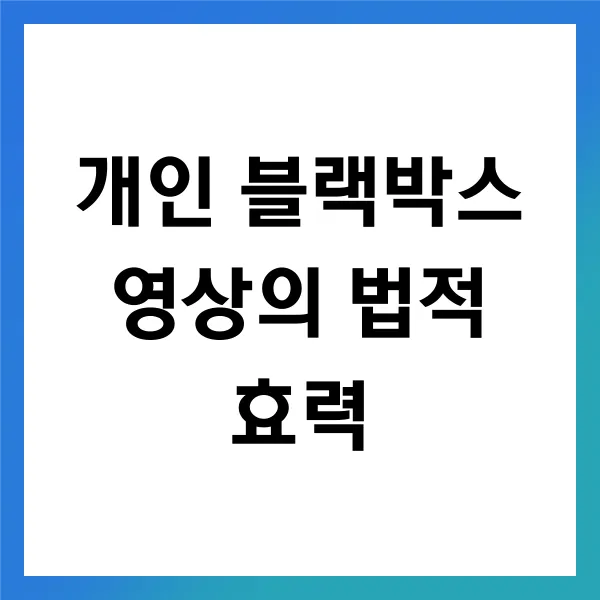 결국, 개인 블랙박스 영상의 법적 신뢰성 문제는 기술적 요소, 법적 기준, 그리고 사건의 정황이 모두 결합된 복합적인 요소 로 구성되어 있습니다. 이러한 신뢰성이 확보되지 않는다면, 법적 분쟁에서 블랙박스 영상이 유용한 증거로 기능하기 어려워질 것입니다 . 따라서 개인 사용자들은 블랙박스를 잘 활용하여 자신을 보호하는 동시에, 법정에서의 신뢰성을 높이는 데 기여해야 할 필요성이 큽니다.