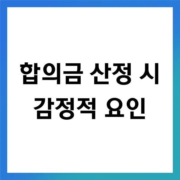 특히, 감정적 요인 은 합의금의 금액을 결정하는 데 있어 심각한 영향을 미칩니다. 예를 들어, 심리적 고통이 심한 경우 , 합의금이 500만 원에서 1000만 원 이상 증가할 수 있는 경우도 있습니다. 이는 피해자가 경험한 정서적 고통의 정도에 따라 다릅니다. 따라서, 피해자의 정신적 상태와 사고로 인해 느낀 고통을 정확하게 평가하는 것이 필수적입니다.