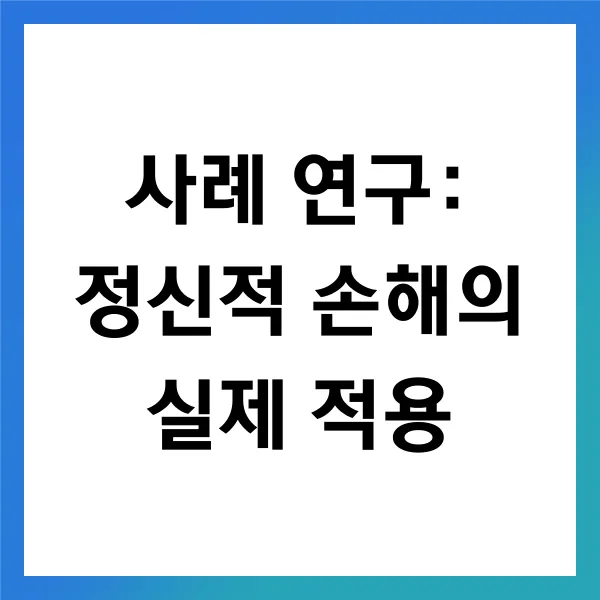 정신적 손해의 실제 적용은 각 사건마다 다르게 나타납니다. 법원은 피해자의 주장을 바탕으로 심리 전문가의 의견을 참고하여 배상금을 결정하게 됩니다. 또한, 피해자의 생활 수준, 치료 경과 및 타인과의 관계 회복 여부도 결정적인 요소로 작용합니다.