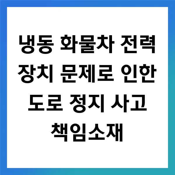 냉동 화물차 전력 장치 문제로 발생하는 사고는 도로 안전에 큰 위협 이 됩니다. 이러한 사고는 차량의 기능적 결함 으로 인해 발생할 수 있으며, 그로 인해 인명과 재산에 심각한 피해 를 초래할 수 있습니다. 이번 포스팅에서는 냉동 화물차의 전력 장치가 어떻게 작동하는지를 살펴보고, 사고 발생 원인과 그에 따른 법적 책임을 구분하여 분석하겠습니다. 또한, 향후 유사한 사고를 예방하기 위한 다양한 안전 대책 도 함께 논의할 예정입니다. 이 글을 통해 냉동 화물차의 전력 장치 문제의 중요성과 그에 따른 책임 소재를 명확히 이해할 수 있기를 바랍니다.