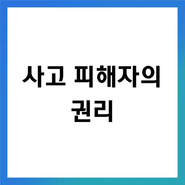 이처럼, 사고 피해자는 다양한 법적 권리를 가지고 있으며, 이를 충분히 활용함으로써 자신의 권리를 지키고, 향후 있을 수 있는 유사 사건을 예방하는 데 기여할 수 있습니다. 피해자가 이러한 권리를 적극적으로 주장하고 활용할 때, 사회 전체의 교통 안전이 더욱 향상될 수 있습니다. 따라서 사고 피해자의 권리를 명확히 이해하고, 필요한 경우 전문가의 도움을 받는 것이 매우 중요합니다.