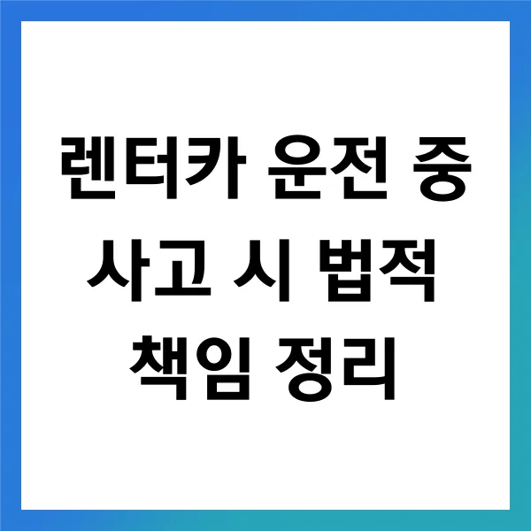 렌터카 운전 중 사고가 발생했을 때, 보험의 역할과 운전자의 법적 책임 을 이해하는 것은 필수적입니다. 교통사고 발생 시, 렌터카 보험은 손해를 최소화하는 데 중요한 역할 을 합니다. 운전자는 법적 책임과 의무를 충분히 숙지하고, 대여 계약의 조건을 철저히 검토 해야 합니다. 계약 시 보험 내용과 적용 범위 를 정확히 확인하는 것이 중요합니다. 사고 발생 시에는 신속하고 적절한 대처 가 필요하며, 렌터카 회사 및 보험사와의 즉각적인 연락을 통해 문제를 해결해야 합니다. 올바른 준비와 신중한 태도는 사고를 효과적으로 관리하고 , 법적 책임에서 자유로울 수 있게 합니다.