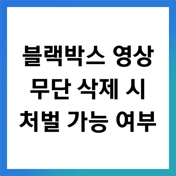 결국 블랙박스 영상의 위력을 인식 하고, 그 데이터의 삭제가 어떤 법적 파급을 미칠지 충분히 이해할 필요 가 있습니다. 불필요한 법적 분쟁과 처벌을 피하기 위해, 항상 전문적이고 법에 근거한 행동 을 취해야 할 것입니다. 이러한 법적 조항들에 대해 명확히 알아 두신다면, 더 큰 상식을 가지고 블랙박스를 관리할 수 있을 것입니다 .