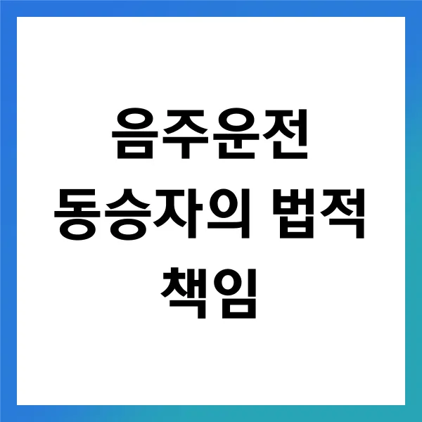 음주운전의 위험성 과 그로 인한 법적 책임 은 운전자뿐만 아니라 동승자 에게도 미칠 수 있습니다. 동승자가 적극적으로 음주운전을 방조하거나 그 위험을 인지하고도 묵인했다면 법적 처벌 을 받을 가능성이 큽니다. 따라서 관련 법규와 그 책임의 범위 를 철저히 이해하고, 음주운전을 막기 위한 예방적 조치를 취하는 것이 중요합니다. 이러한 의무가 나와 타인의 안전을 지킬 수 있는 중요한 수단 임을 명심해야 합니다. 결국, 책임 있는 행동만 이 음주운전으로 인한 피해를 최소화할 수 있습니다.
