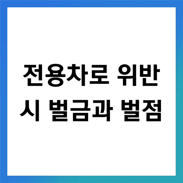 이와 같은 구체적이고 실용적인 정보들은 모든 운전자에게 유익하며, 안전한 도로 환경을 조성하는데 기여할 것입니다. 전용차로 위반은 단순한 교통 위반이 아니라 공공의 안전과 직결된 중요한 사안임을 잊지 말아야 합니다.