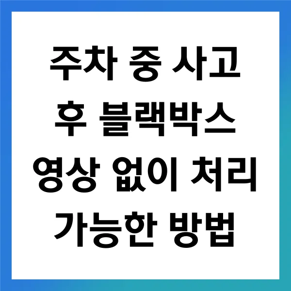 주차 중 사고는 예기치 않게 발생할 수 있으며 , 평상시에는 신경 쓰지 않았던 요소들이 큰 차이를 만들 수 있습니다. 보험사와의 협상 , 목격자의 확보, 사고 현장 증거 수집, 신속한 신고 절차 등은 사고의 효과적 처리를 위해 필수적 입니다. 각 요소는 사고 후의 결과를 좌우할 수 있는 중요한 기준 이 됩니다. 블랙박스 영상이 없다 하더라도 위의 전략들을 체계적으로 실행하면 충분히 해결할 수 있습니다. 평소에도 이에 대한 준비와 대응능력을 기르는 것 이 안전과 보호를위한 중요한 방법 입니다.